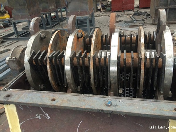 我公司所生产的橡胶粉碎机内部的刀盘、勾刀、刀片均采用锰钢制作。