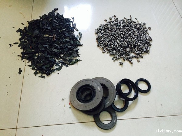 汽车密封圈粉碎前后:(橡胶和铁完全分离)