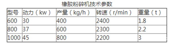 【橡胶粉碎机技术参数】